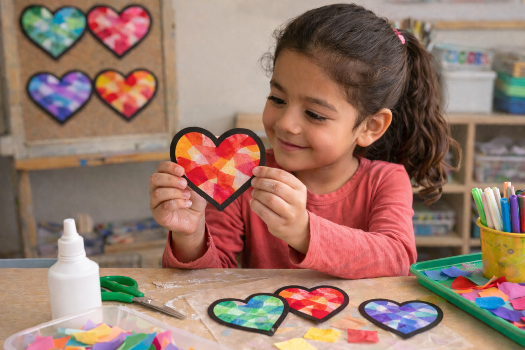 February 14, 2026 – 12pm – Kindergarten-2nd graders – Paper Stained Glass Hearts